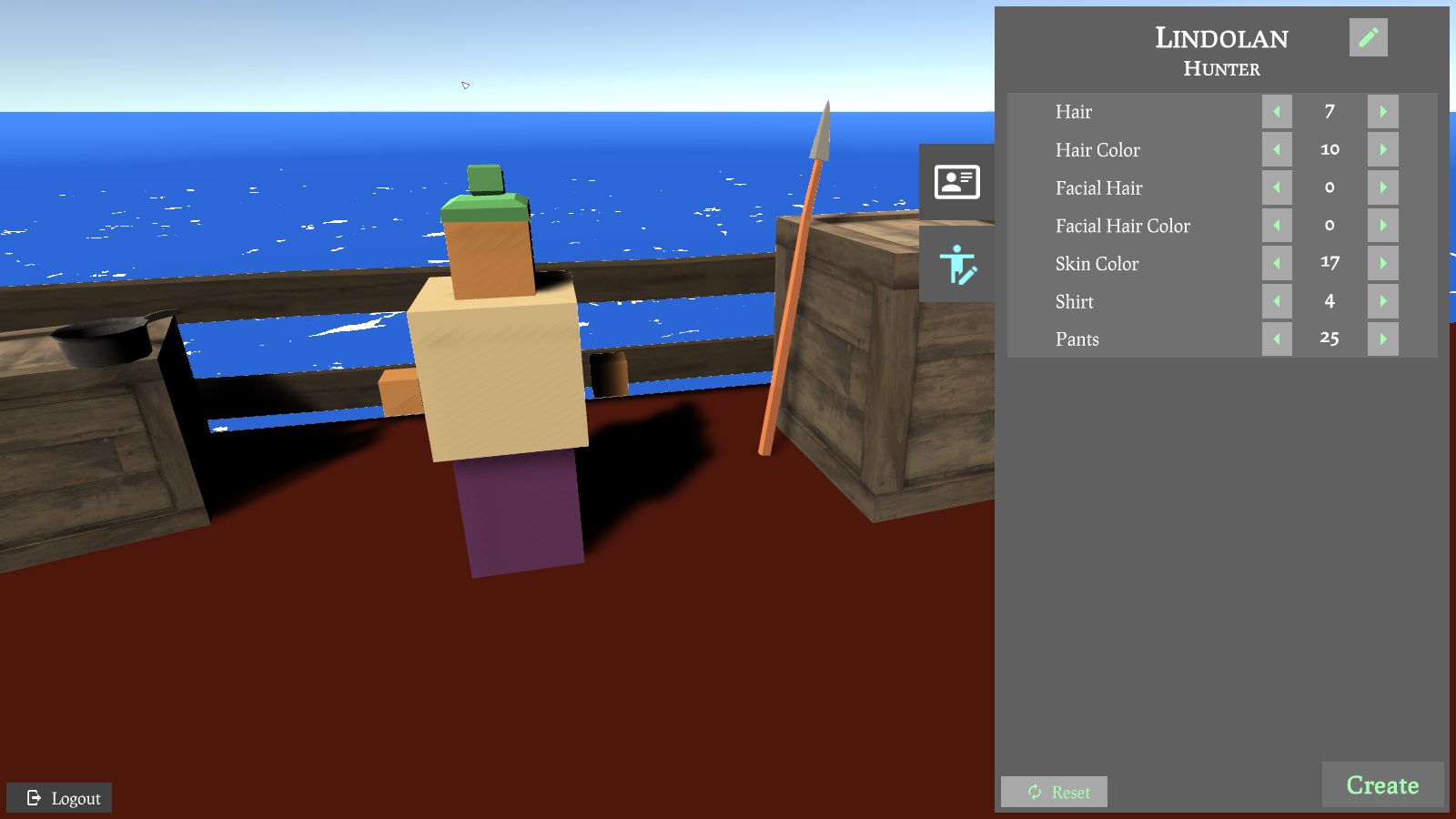 Something I have been sitting on for a while is character creation and customization. This feature took a good bit of time, as it required changes to the database schema, login flow, and clientside player replication. I also had to make a bunch of 3d models for hair styles, beards, etc. Everything is still pretty rough, but at least now there is some variety in characters on the island.