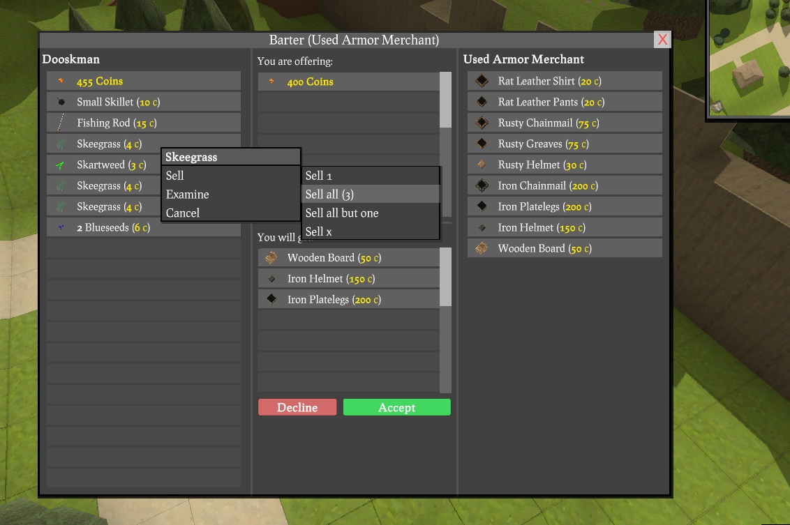 A lot of the inventory improvements that I just talked about also applied to the barter window. However, an added bonus here is that you can now sell all of a certain item in bulk, even if that item isn't stackable. This makes shop trips much less tedious.